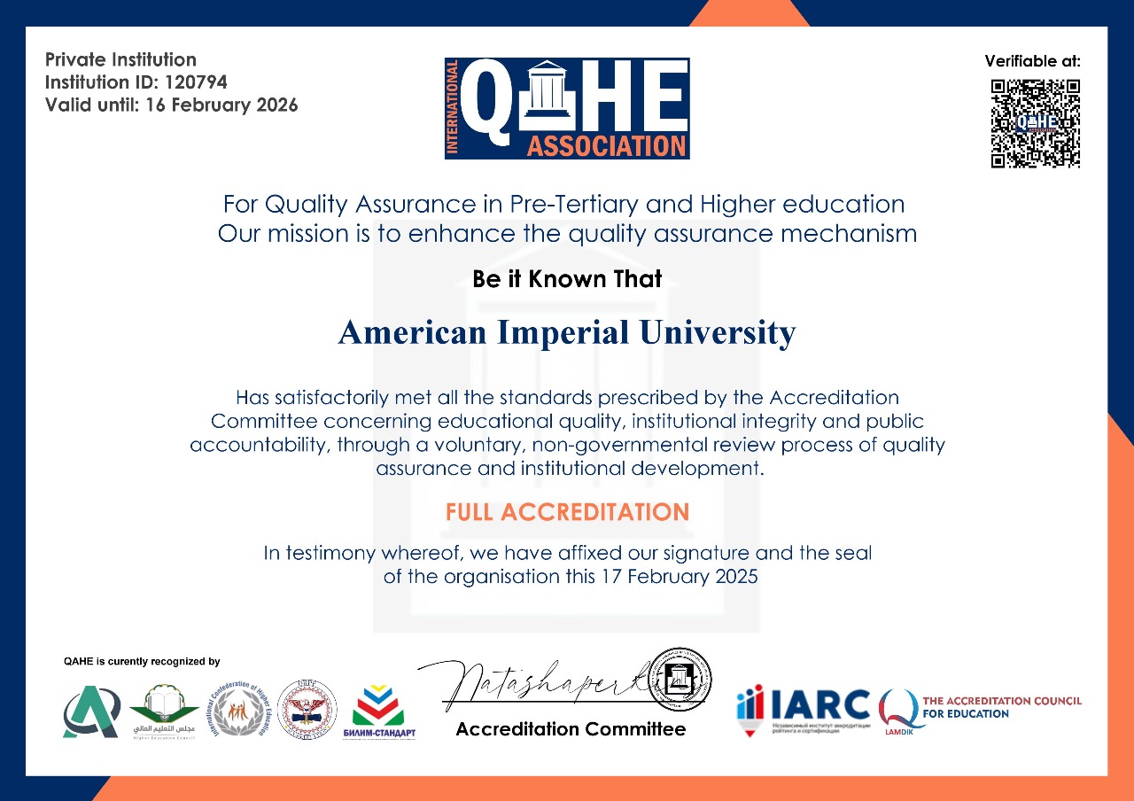 At American Imperial University, experience the pinnacle of academic prestige with coveted degrees and industry-relevant curriculum. Benefit from the latest technological advancements and flexible learning options, supported by expert faculty. Our mentorship programs and global networking opportunities ensure your success is accredited and internationally recognized.